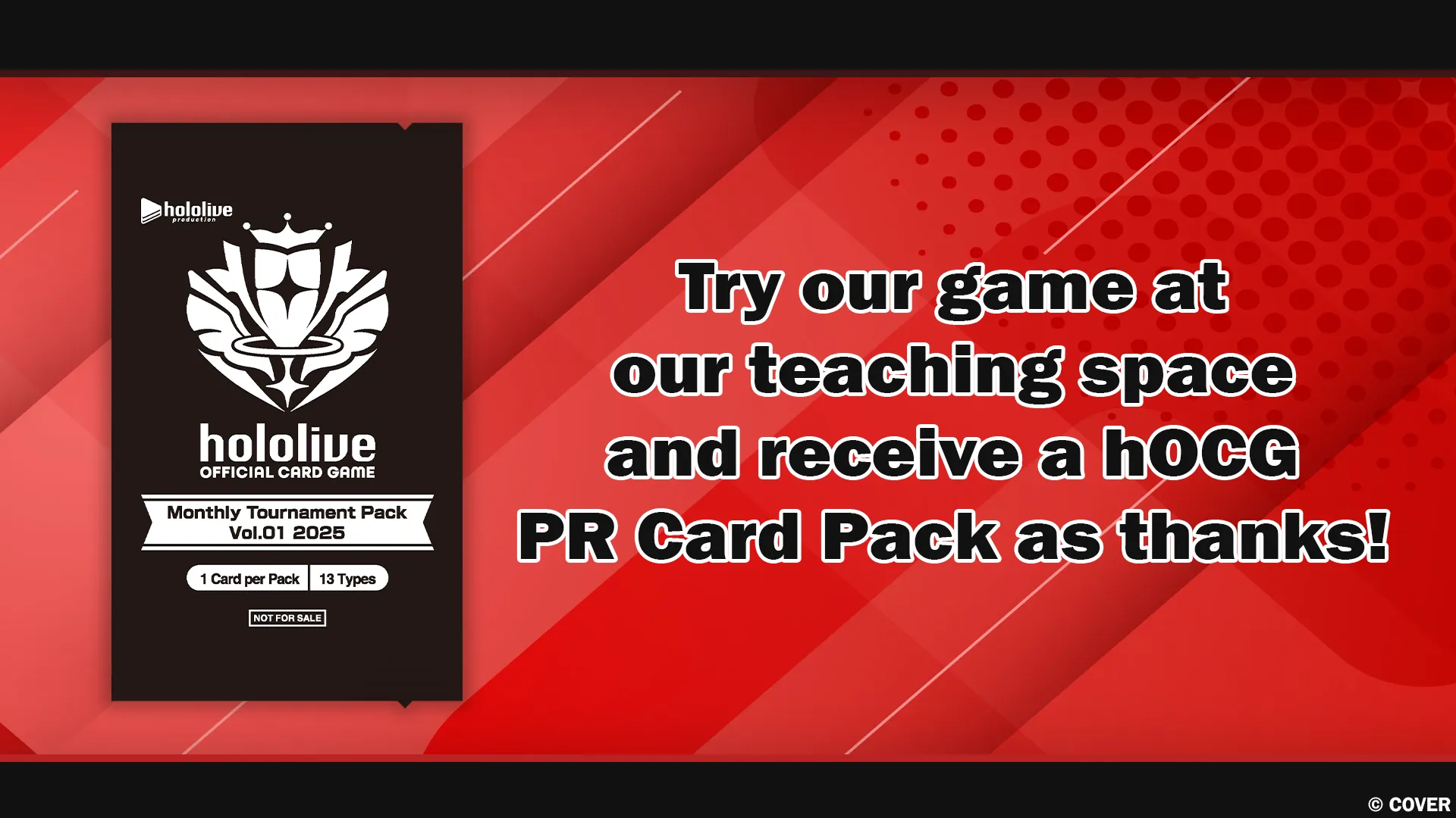 Participants of our teaching space will receive a “Monthly Tournament Pack vol.1” hololive OFFICIAL CARD GAME PR Card Pack, as thanks for joining in.
