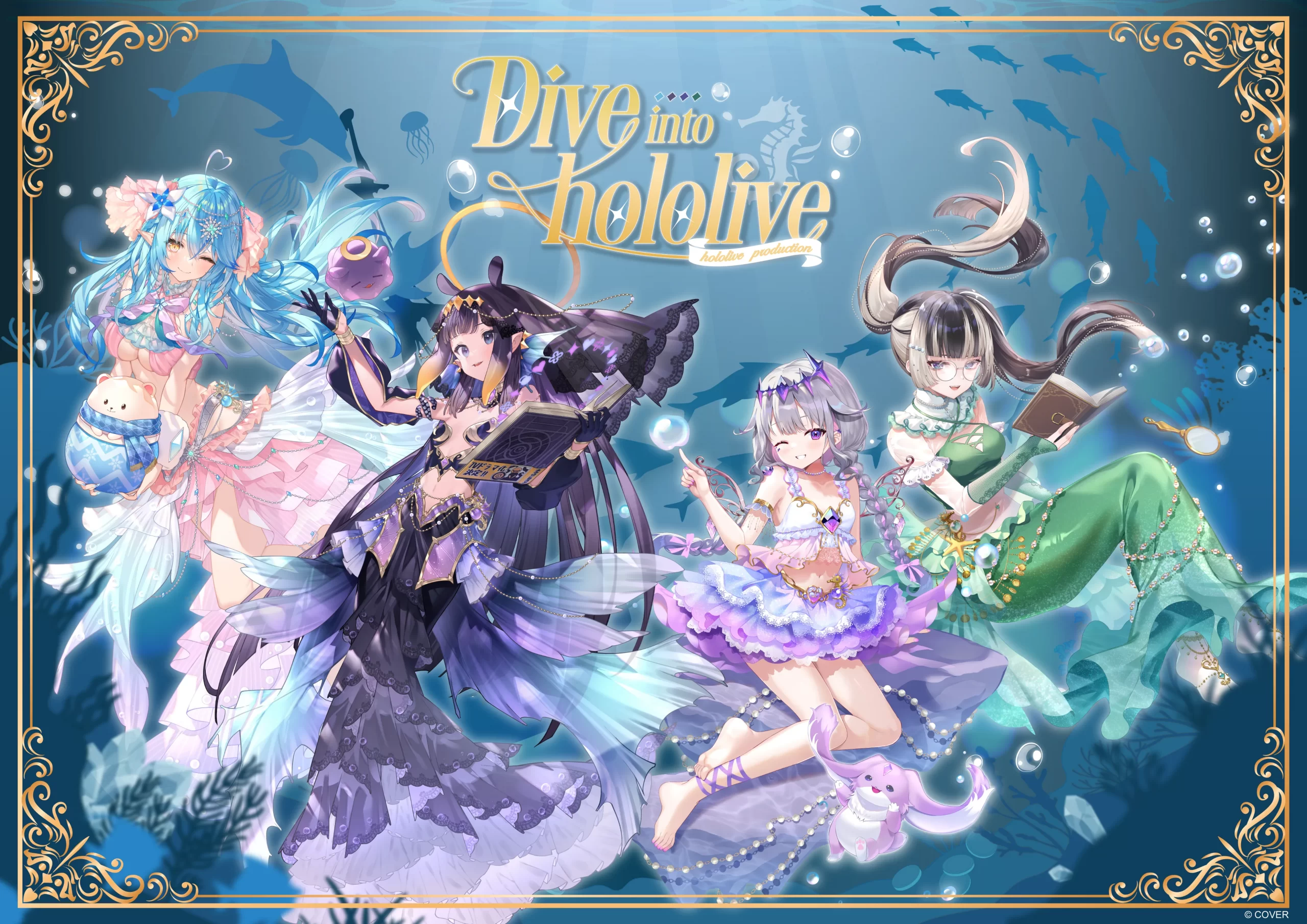 “Dive into hololive” is a two-part collaboration event where talents Yukihana Lamy, Ninomae Ina’nis, Koseki Bijou, and Juufutei Raden appear to the fans as “undersea princesses” in a new key visual. The upcoming cafe features a fresh visual identity that exudes an ocean theme, with the four talents debuting brand-new outfits that bring a whole new vibe. Expect a totally different merch lineup at the cafe, too!